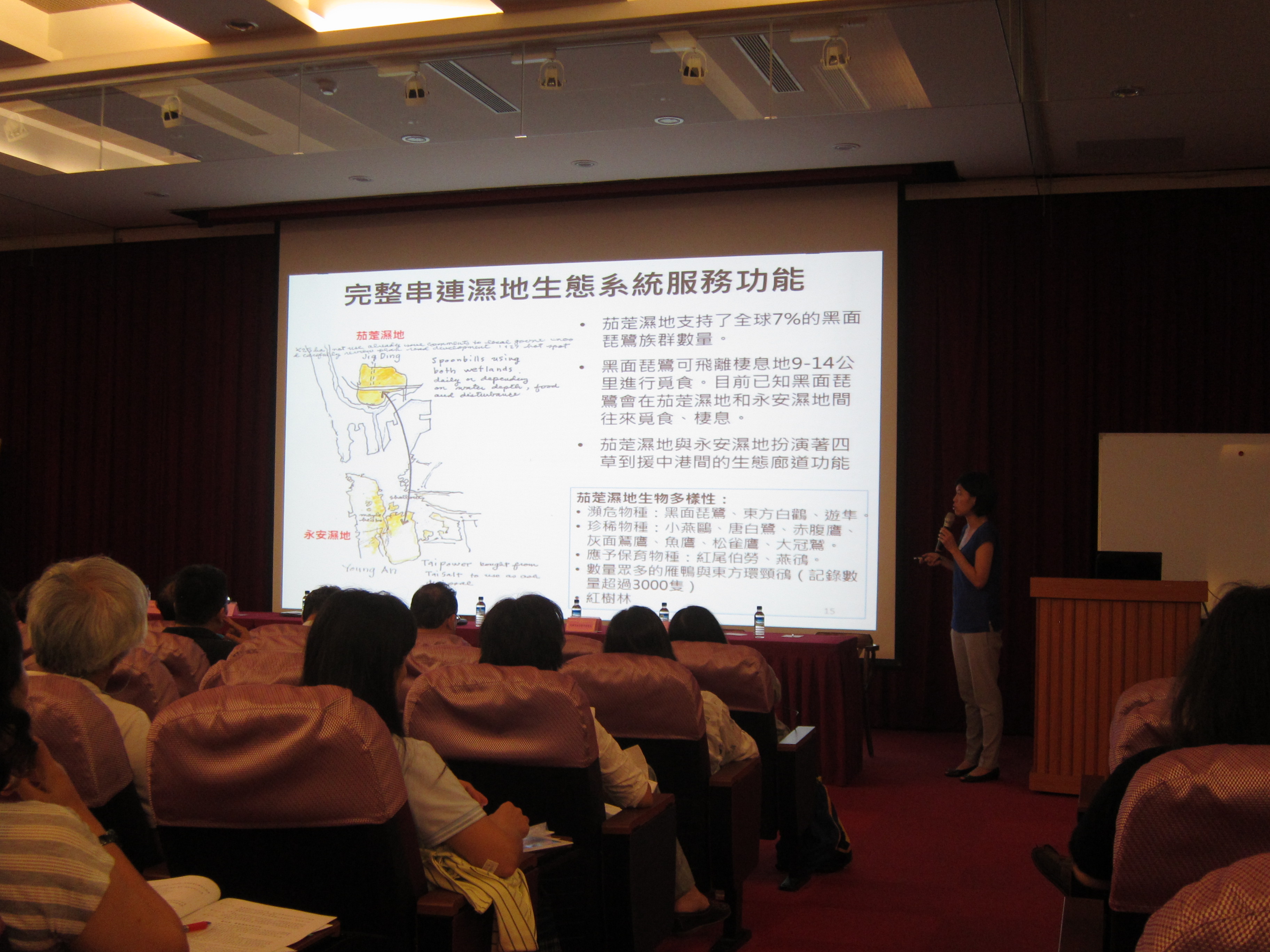 At the break time, I carried the poster with illustration and explained the issue of Jiading Wetland. These scholars are nice and patient. We have collected their name cards and sent them further information. (including Ben LePage, James Perry, Joe S.Y. Lee, Machiel Lamers, 文賢繼, 胡正恆, Reiko Nakamura)